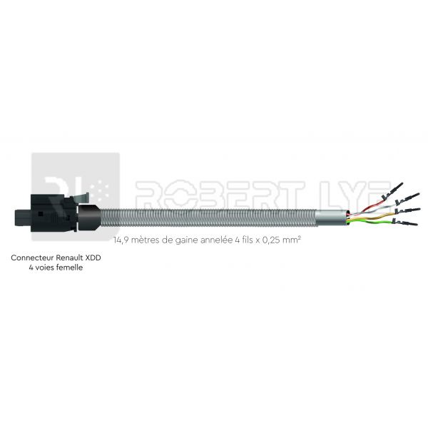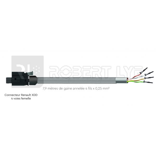 4 cosses femelles, côté tableau de bord, pré-serties pour insertion dans le connecteur constructeur 52 voies.